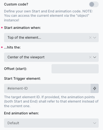 Nearly any element in Bricks Builder can act as an animation trigger, controlling the timeline of a target animation anywhere on the page—and not just a single timeline. It can trigger multiple timelines, either sequentially or simultaneously.
